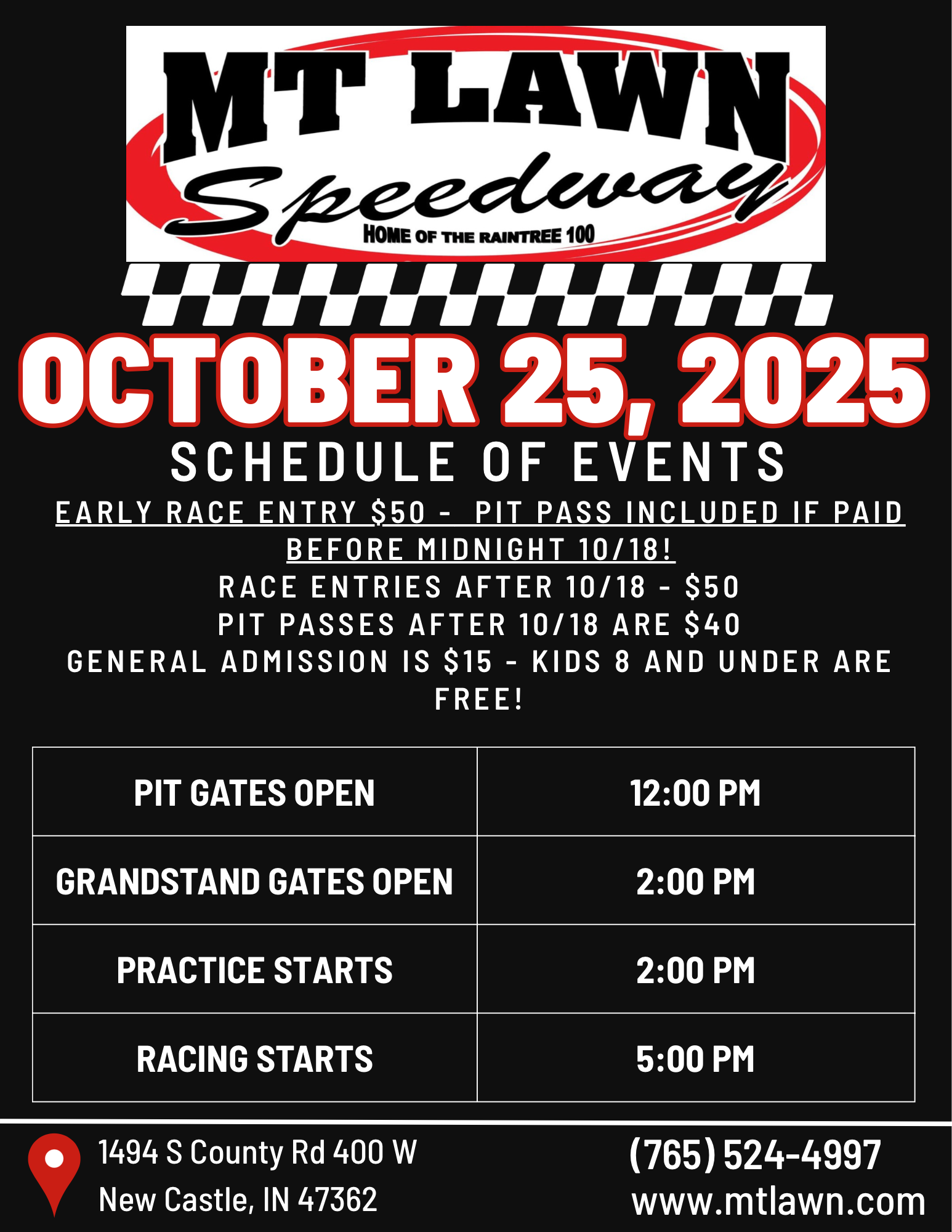 Driver and 1099 info (a must in order to receive prize money)